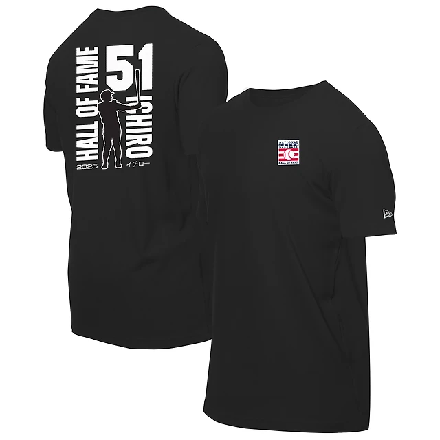 Men's New Era Ichiro Suzuki Black Seattle Mariners 2025 National Baseball Hall of Fame Graphic T-Shirt