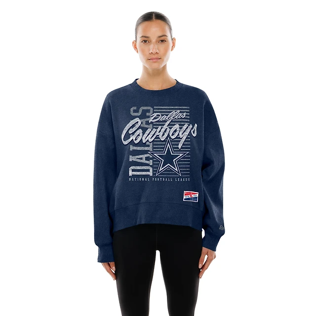Women's New Era Navy Dallas Cowboys Oversized Throwback Mineral Wash Crew Neck Sweatshirt