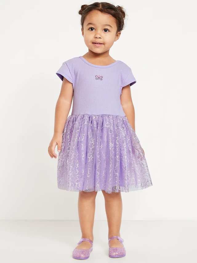 Short-Sleeve Fit and Flare Tutu Dress for Toddler Girls