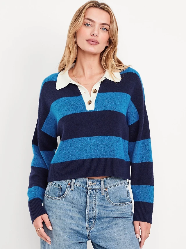 Long-Sleeve Sweater-Knit Polo