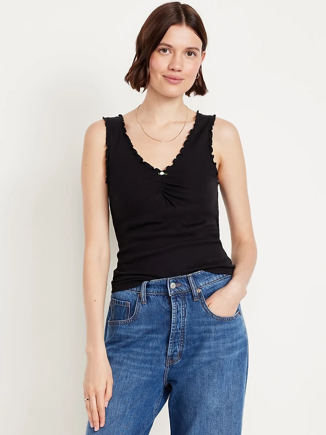 Lace-Trim V-Neck Crepe Top