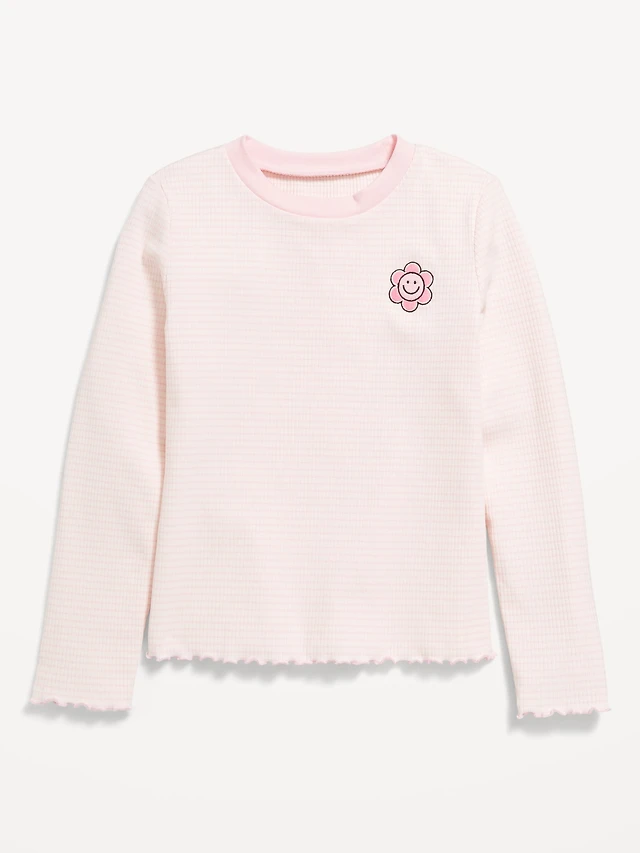 Printed Long-Sleeve Thermal-Knit T-Shirt for Girls