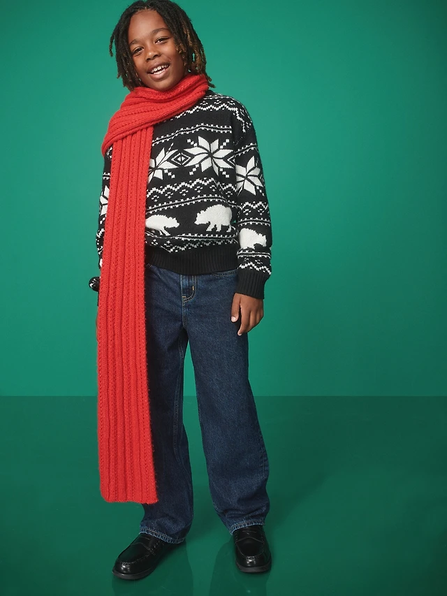 Oversized Crew-Neck Holiday Graphic Sweater for Boys