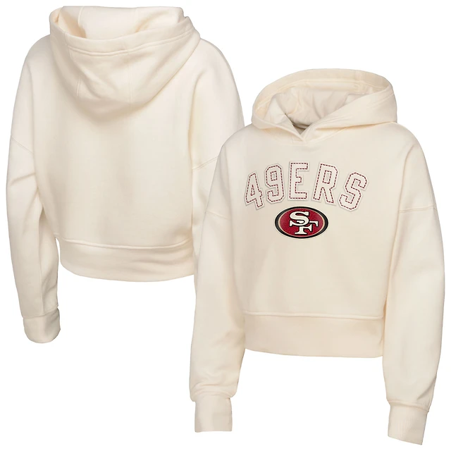 Girl's Youth Outerstuff Cream San Francisco 49ers Oversized Blitz Cropped Pullover Hoodie