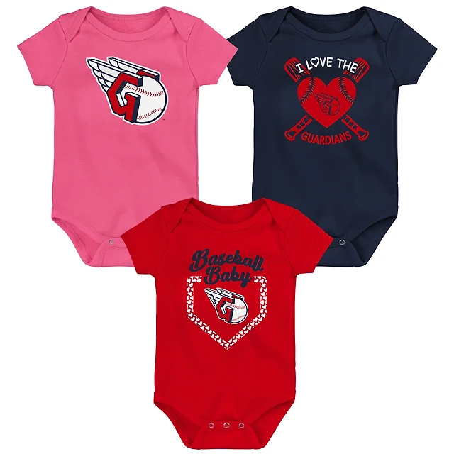 Infant Navy/Red/Pink Cleveland Guardians Baseball Baby 3-Pack Bodysuit Set