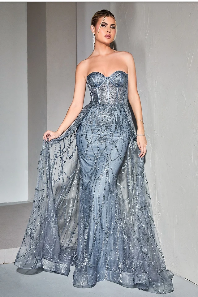 GLITTER CORSET GOWN WITH EMBELLISHMENTS