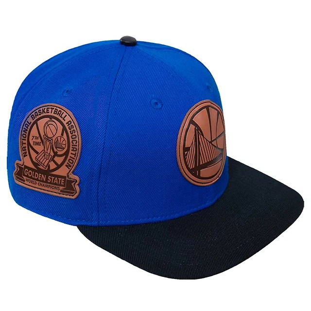 Men's Pro Standard Royal Golden State Warriors Heritage Leather Patch Snapback Hat