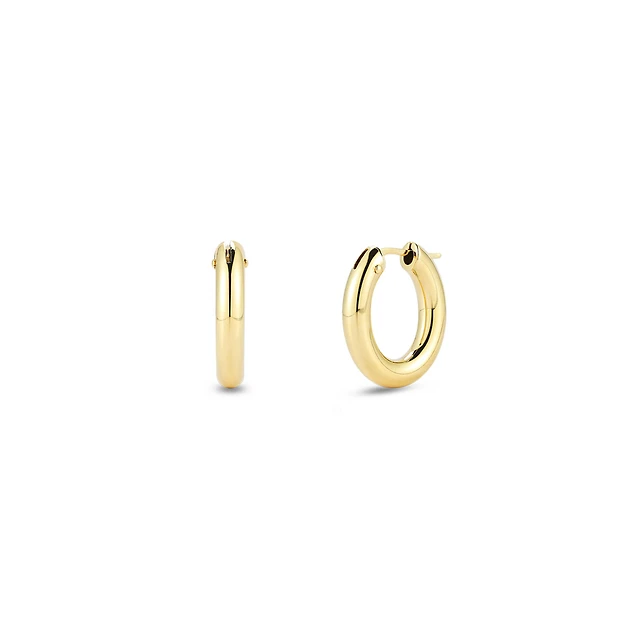 Basic Yellow Gold 15MM Round Hoop Earrings