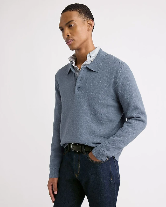 Wool-Blend Long-Sleeve Polo Sweater
