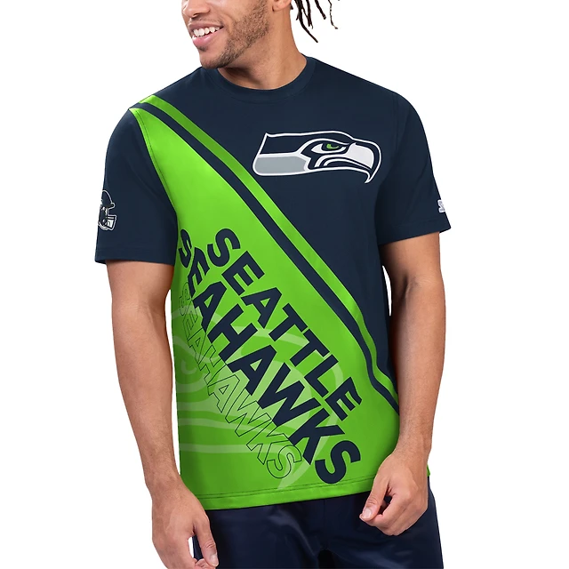 Men's Starter College Navy/Neon Green Seattle Seahawks Finish Line T-Shirt