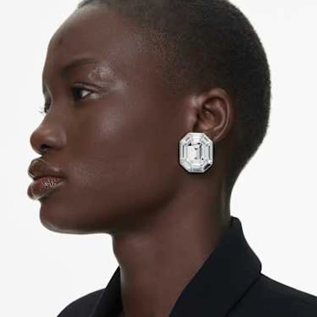 Lucent stud earrings, Pavé, Spike, White, Rhodium plated by SWAROVSKI
