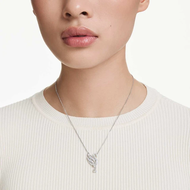 Swan pendant, Swan, White, Rhodium plated by SWAROVSKI