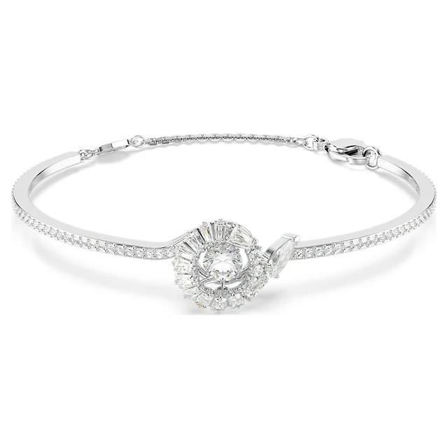 Sublima cuff, Crystal pearl, Round cut, White, Rhodium plated by SWAROVSKI