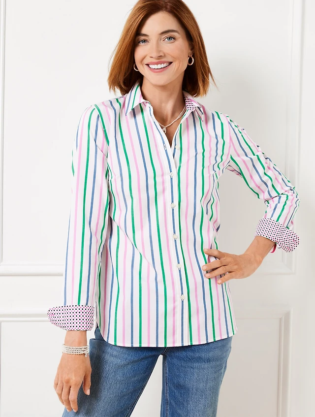 Side Button Fresh Poplin Shell - Dewdrop Stripe