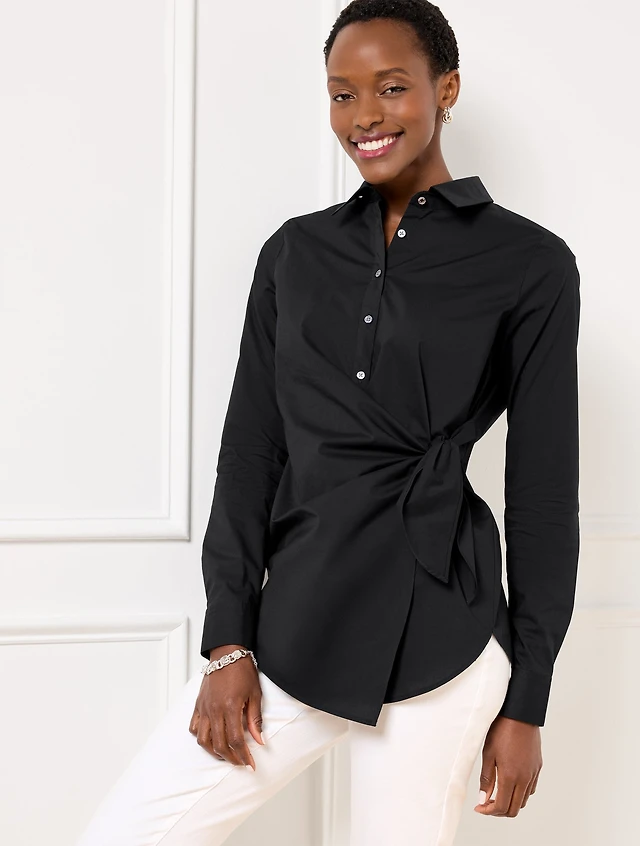 Tie Front Draped Poplin Shirt
