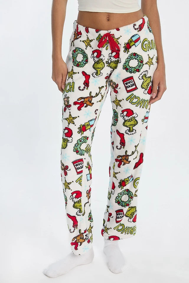 The Grinch Ornaments Plush Pajama Pant - Black /