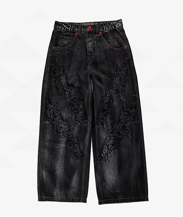 Vitriol Verona Applique Black Washed Wide Leg Jeans