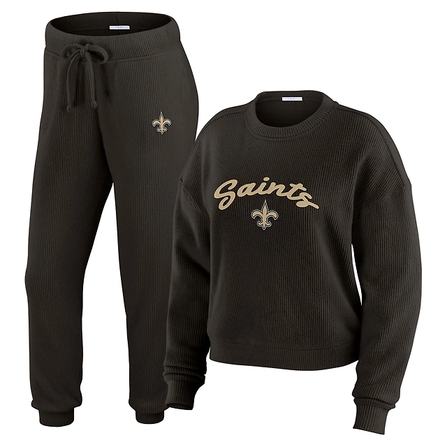 Women's WEAR by Erin Andrews Cream New Orleans Saints Knitted Tri-Blend Long Sleeve T-Shirt & Pants Lounge Set