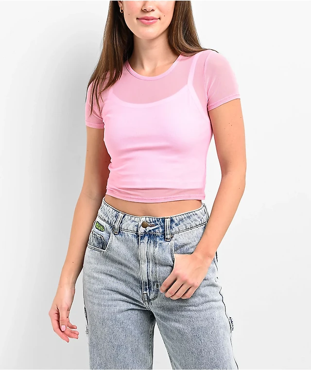 Zine Carmina Ditsy Floral Ballerina Pink Thermal Crop T-Shirt