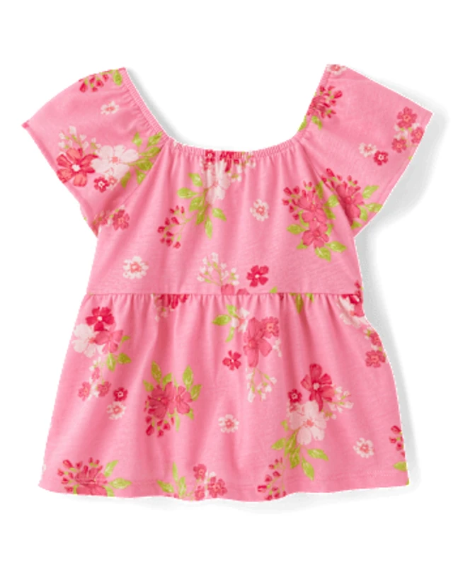 Toddler Girls Print Tie Back Empire Babydoll Top