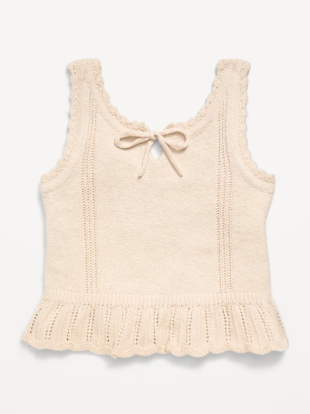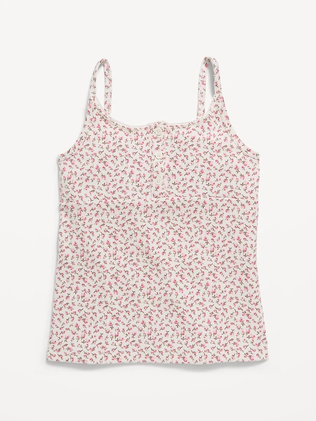 Fitted Lace-Trim Pointelle Tank Top for Girls