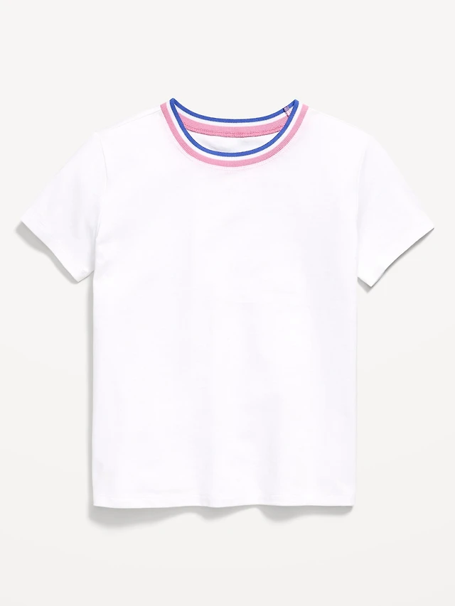 Fitted Short-Sleeve Ribbed Ringer T-Shirt for Girls