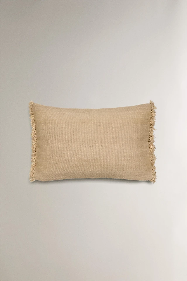 TEXTURED THROW PILLOW COVER WITH RUFFLE TRIM