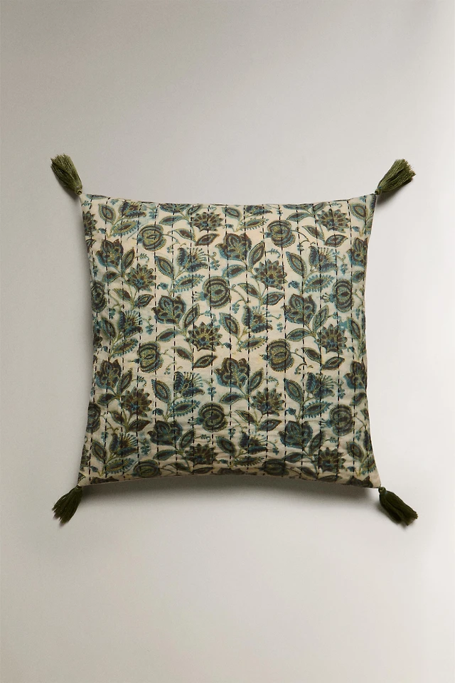 THROW PILLOW COVER WITH FLORAL EMBROIDERY