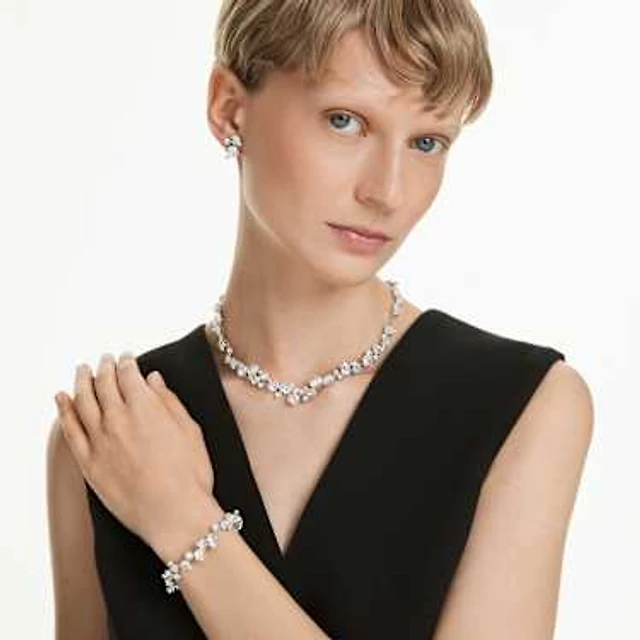 Mesmera cuff, Mixed cuts, White, Rhodium plated by SWAROVSKI