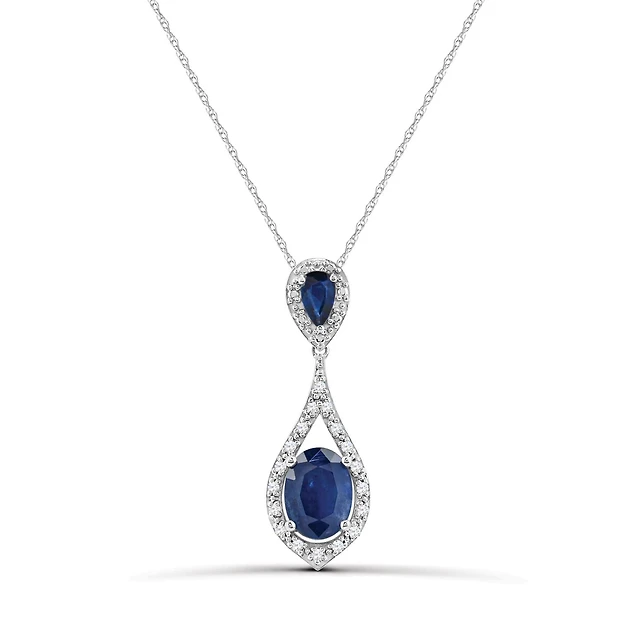 10K White Gold 18" Blue Sapphire and Diamond Pendant