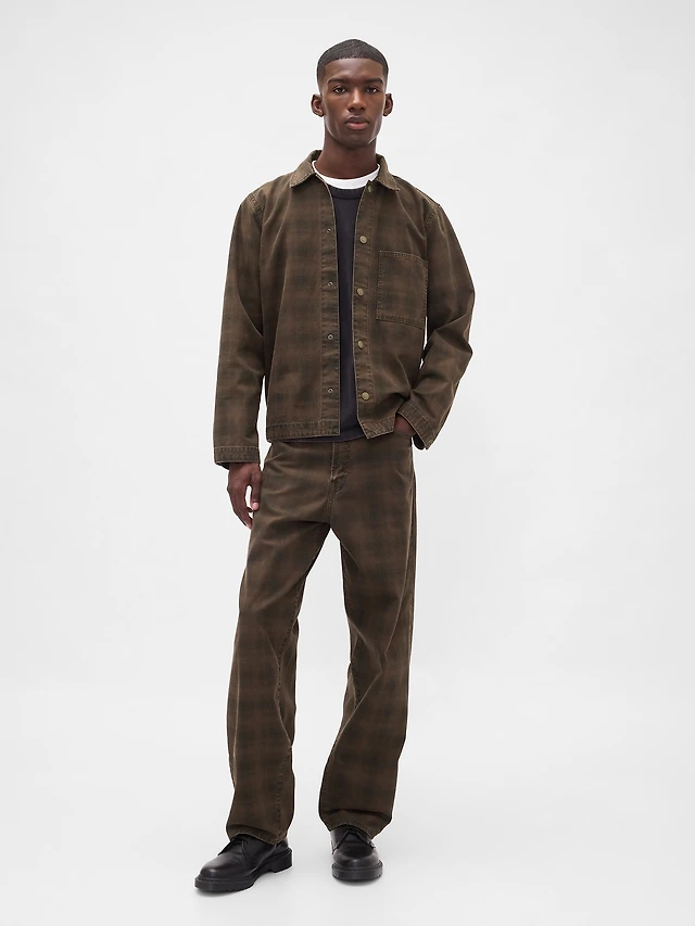 Plaid Canvas Baggy Jeans