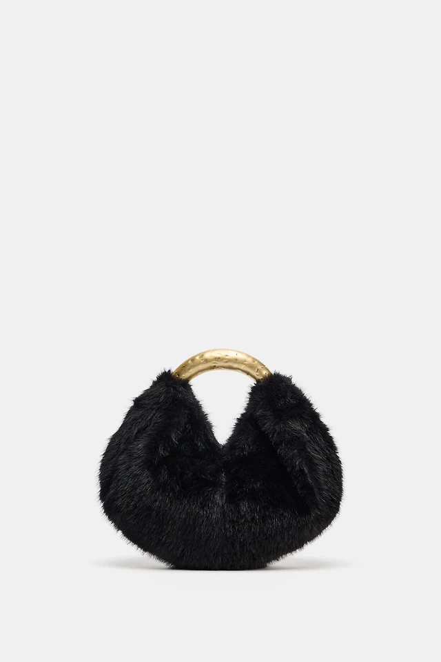FAUX FUR HANDBAG WITH METAL HANDLE