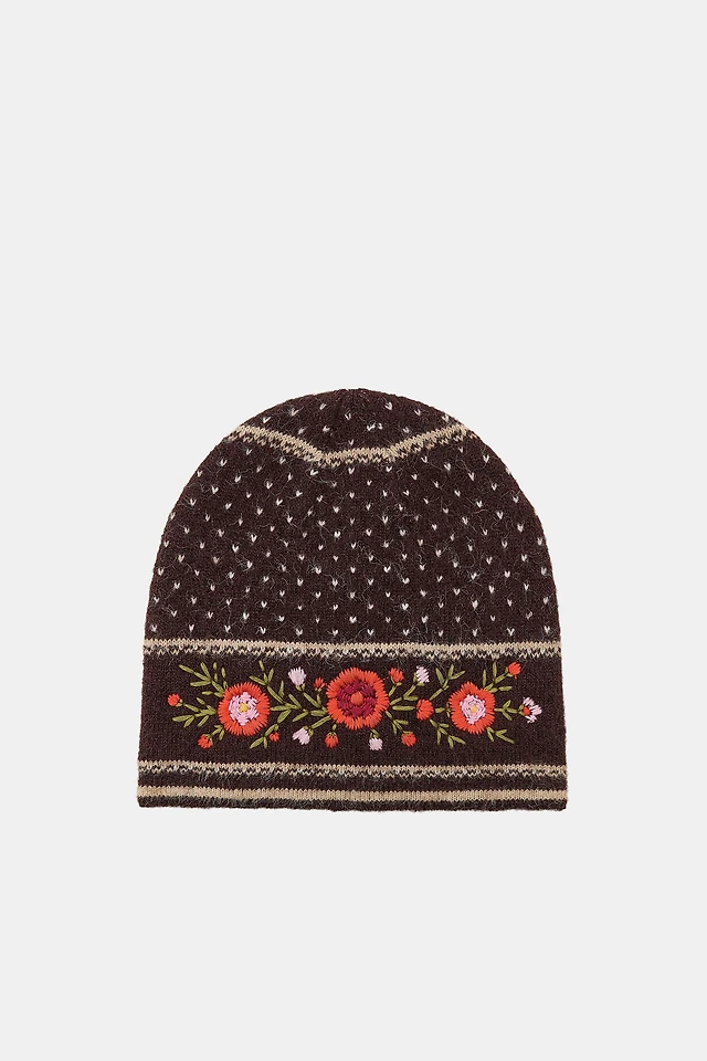 POLKA DOT FLORAL EMBROIDERED BEANIE