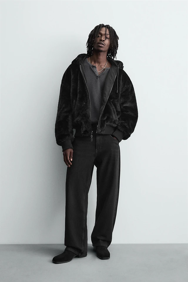 OVERSIZED BOMBER JACKET WITH FAUX FUR LAPEL