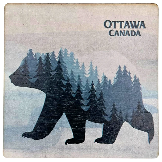 Plaid Canada Maple Leaf Coaster Set with Wood Holder