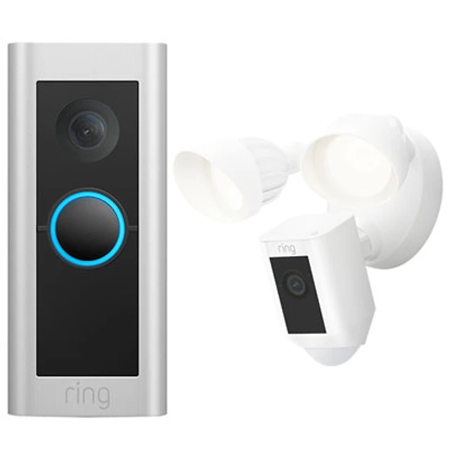 Ring Wi-Fi Video Doorbell Pro 2 & Floodlight Cam Wired Plus Outdoor 1080p HD IP Camera - Satin Nickel/White