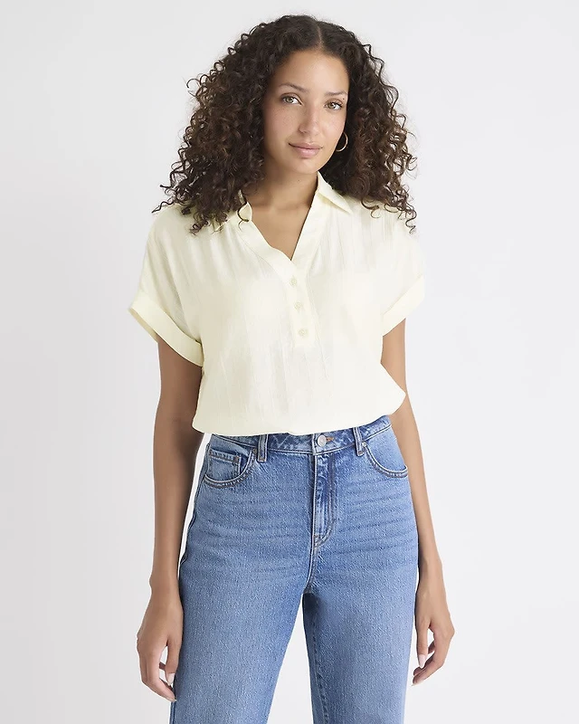 Extended-Sleeve Buttoned-Down Textured Blouse