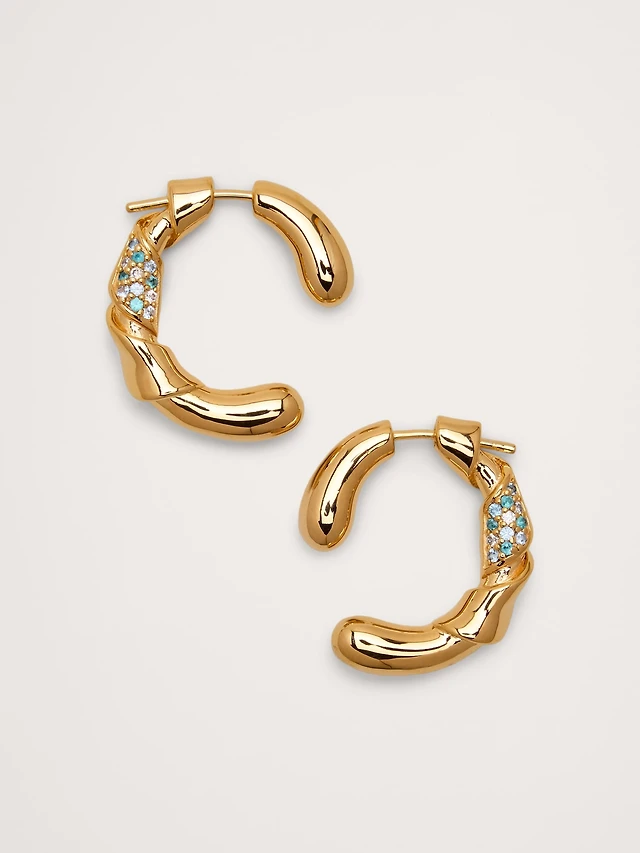 By Women for Women 0.20 CT. T.W. Diamond Lotus Flower Double Row Huggie Hoop Earrings in 10K Two-Tone Gold