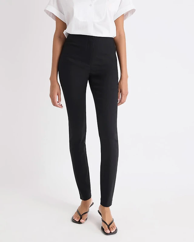 Wool-Blend High-Rise Long Tapered Pant with Elastic Waist