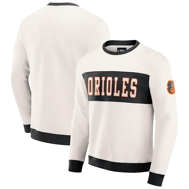 Men's Darius Rucker Collection by Fanatics Cream Baltimore Orioles Colorblock Crewneck Sweatshirt