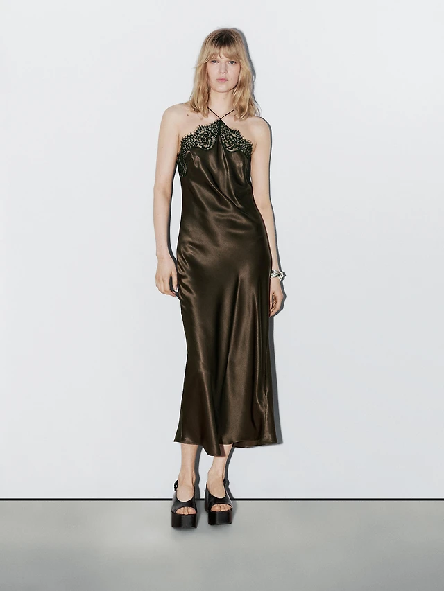 SATIN EFFECT LACE DRESS