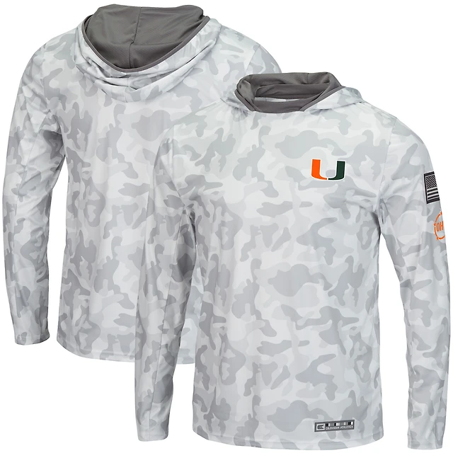 Men's Colosseum Arctic Camo Miami Hurricanes OHT Military Appreciation Hoodie Long Sleeve T-Shirt