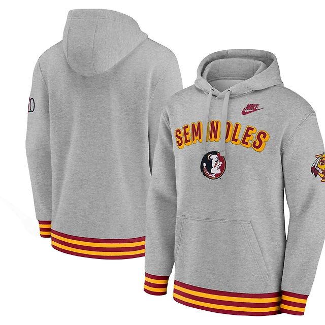 Men's Nike Heather Gray Florida State Seminoles Primetime Club Fleece Pullover Hoodie