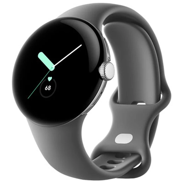 TELUS Google Pixel Watch (GPS + LTE) 40mm Silver Stainless Steel Case w/ Charcoal Active Band - Monthly Financing