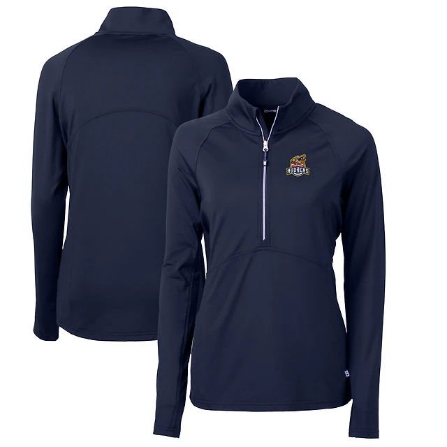 Women's Cutter & Buck Navy Toledo Mud Hens Adapt Eco Knit Stretch Recycled Half-Zip Top
