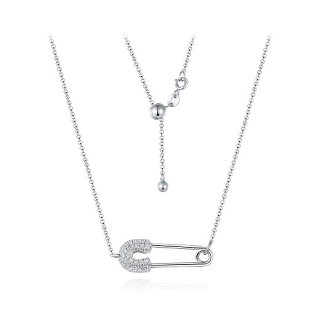 Sterling Silver 19" Cubic Zirconia Lock and Key Pendant