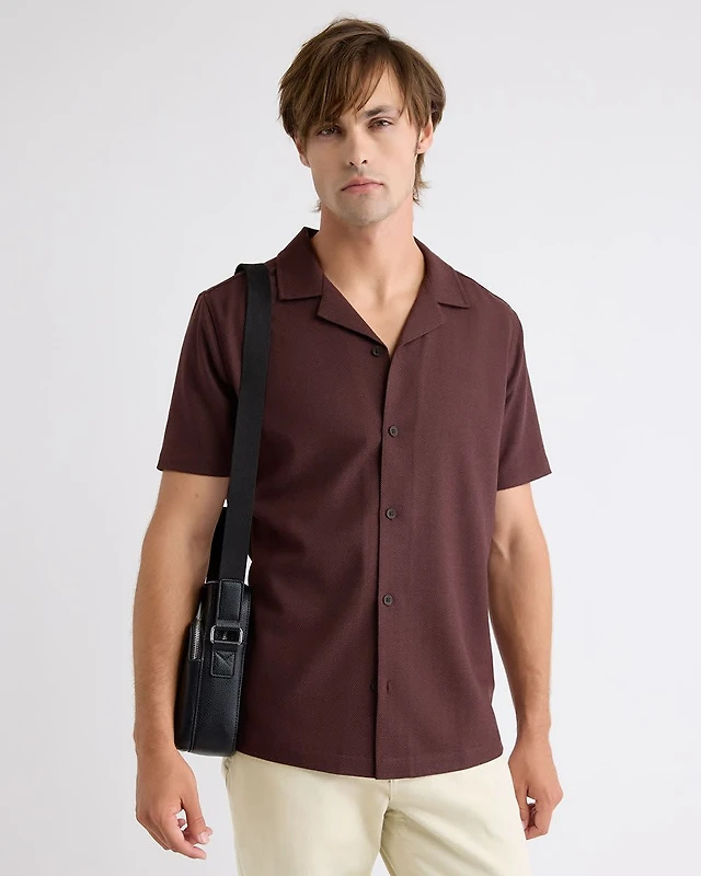 Short-Sleeve Herringbone Shirt with Camp Collar