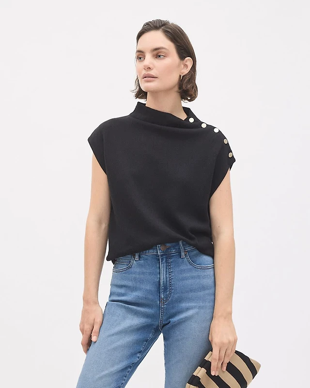 Sleeveless Mock-Neck Sweater with Buttons at Shoulder
