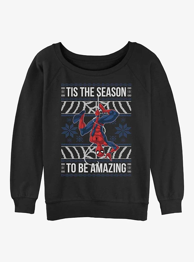 Marvel Spider-Man Tis The Season To Be Amazing Girls Slouchy Sweatshirt