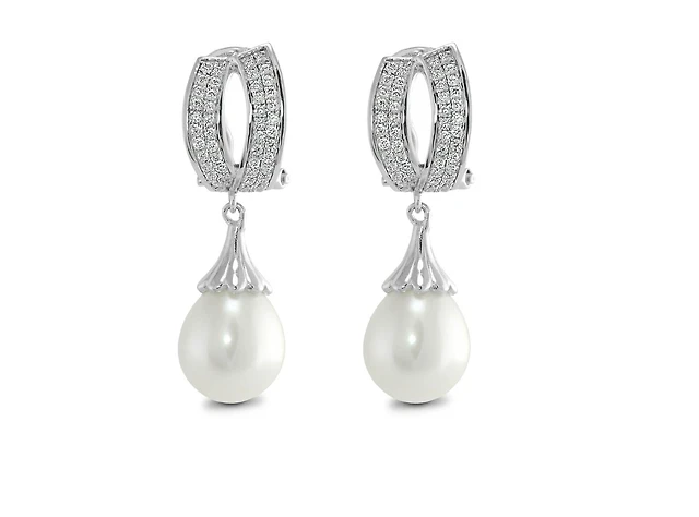 Honora 7.5-8.0mm Freshwater Cultured Pearl and Diamond Accent Drop Earrings in Sterling Silver